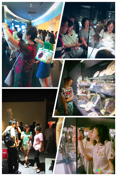 9月8日下午一点,在工会主席钱勇瑾老师的带领下,全体教师先来到了位于上海中心大厦37层的上海观复博物馆。大厦内设有直通37层楼的电梯,走出梯门,静雅的气息扑面而来,迎接老师们的是仿巨形明代宣德年间的青花大瓷盘地板。为了在这座上海最高的博物馆内留下纪念,参观前,全体教师在“大瓷盘”上合影留念。