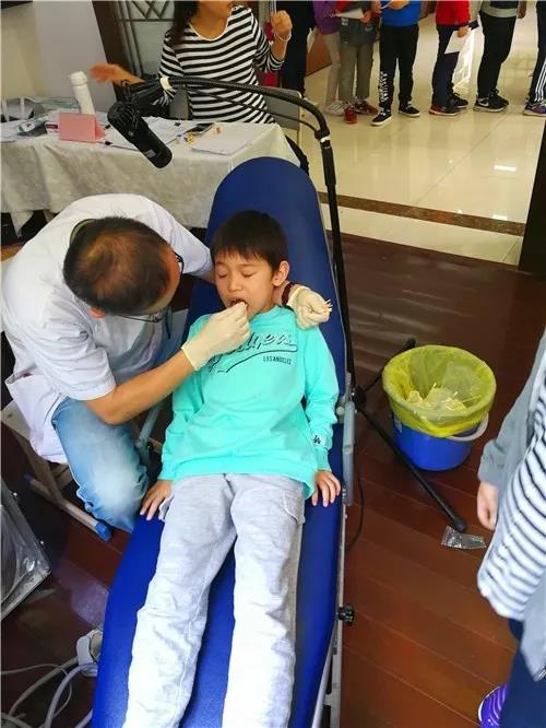 牙防所医生进驻的第一天,学生们在老师的陪同下安静有序地排队检查。虽然有的孩子有些胆怯,但是在老师和医生的鼓励下,在小伙伴的带动下,最终能够克服畏惧心理,勇敢地配合医生完成整个检查修补牙齿的过程。全校学生们良好的精神面貌和文明礼仪获得了医生们的称赞。