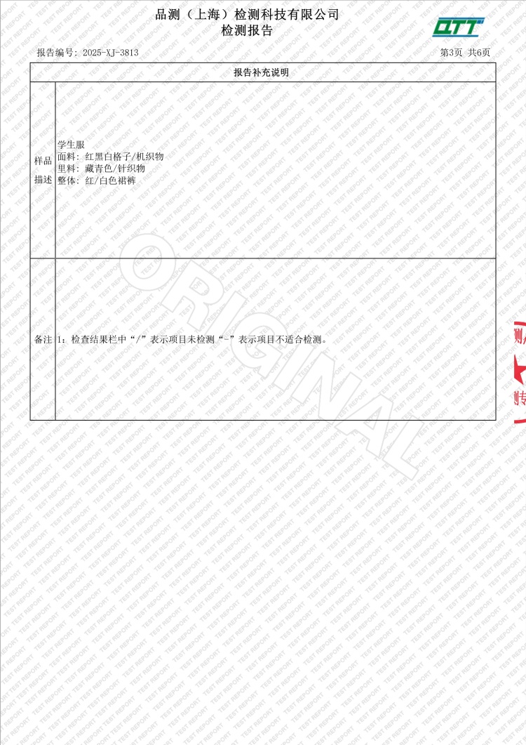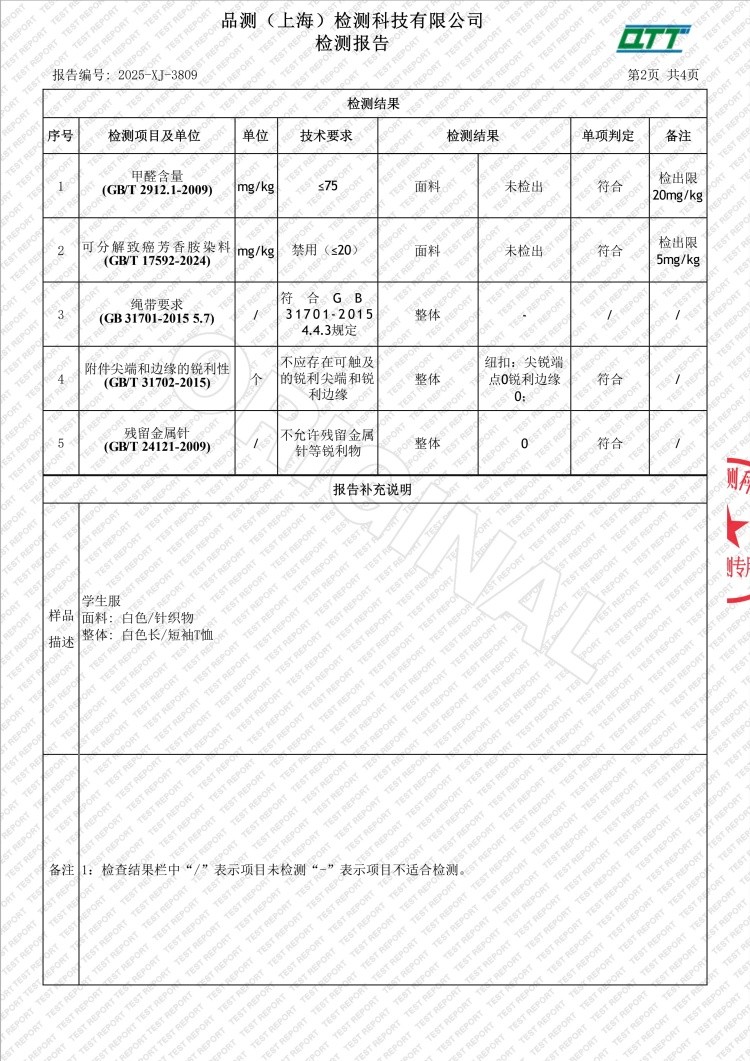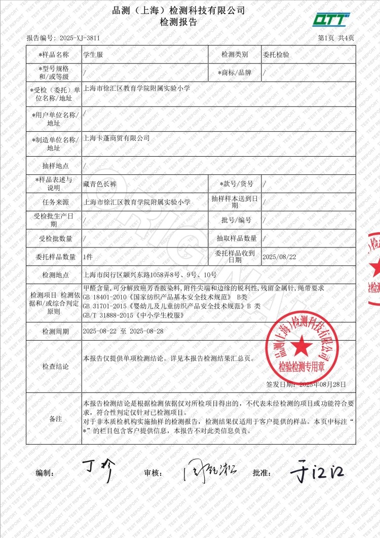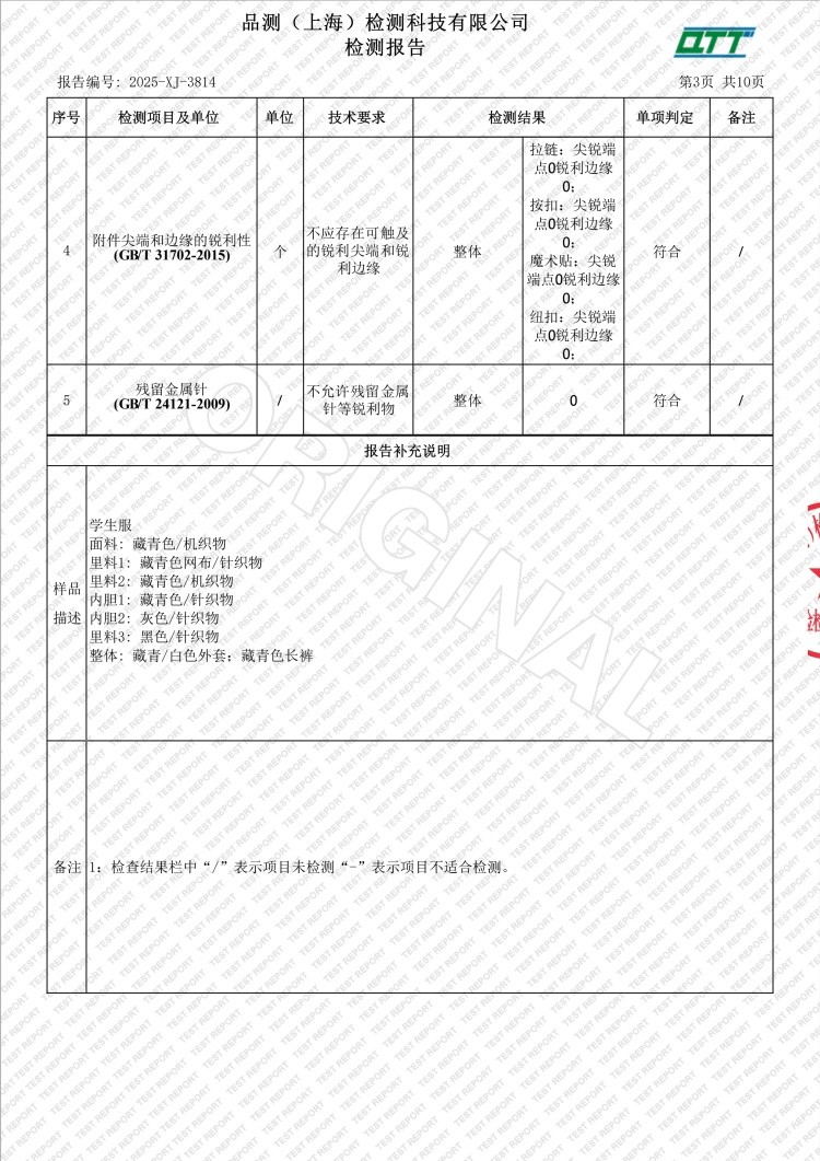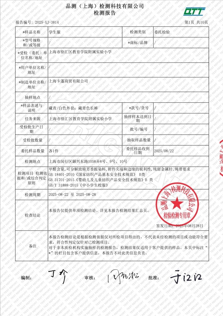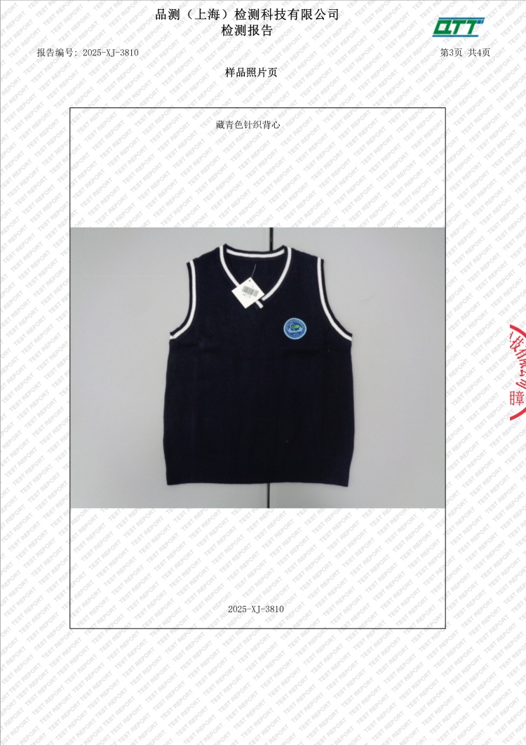 2024年9月徐教院附小一年级校服市教委专项抽测报告(针织背心)