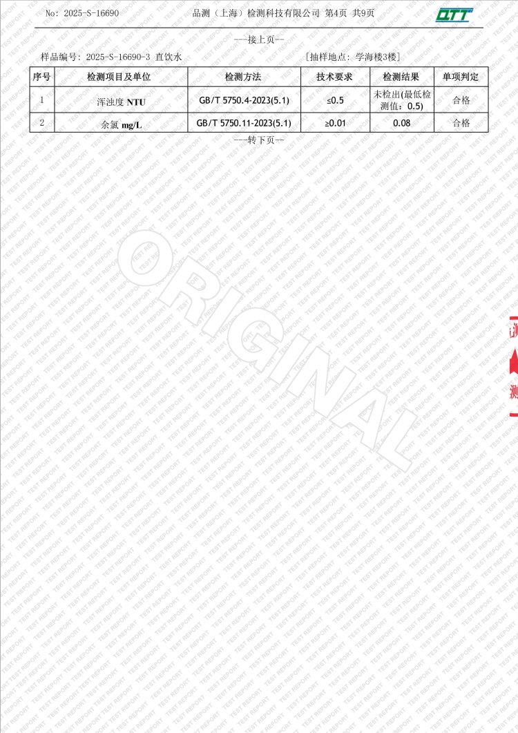 2025学年第一学期徐教院附小直饮水学期检测报告