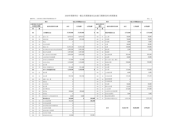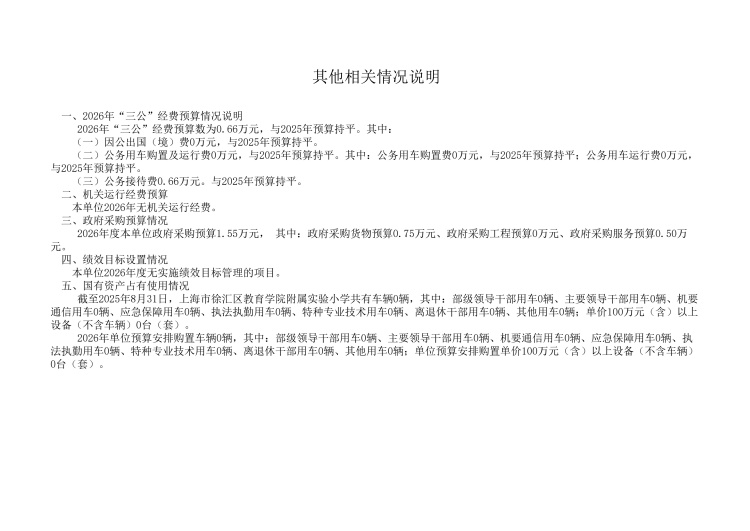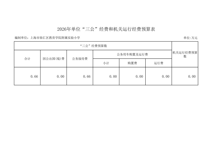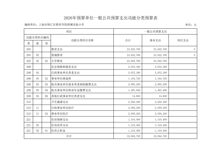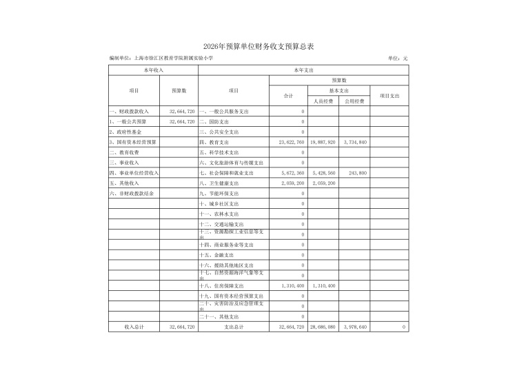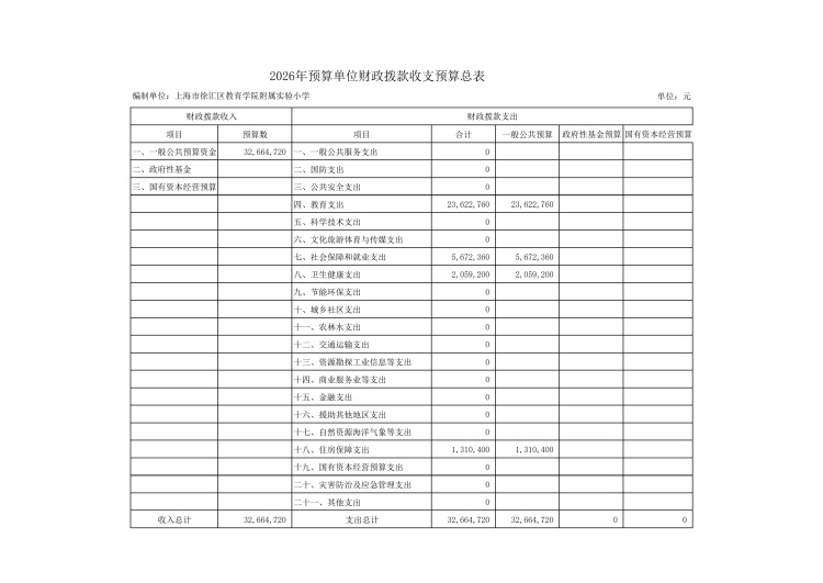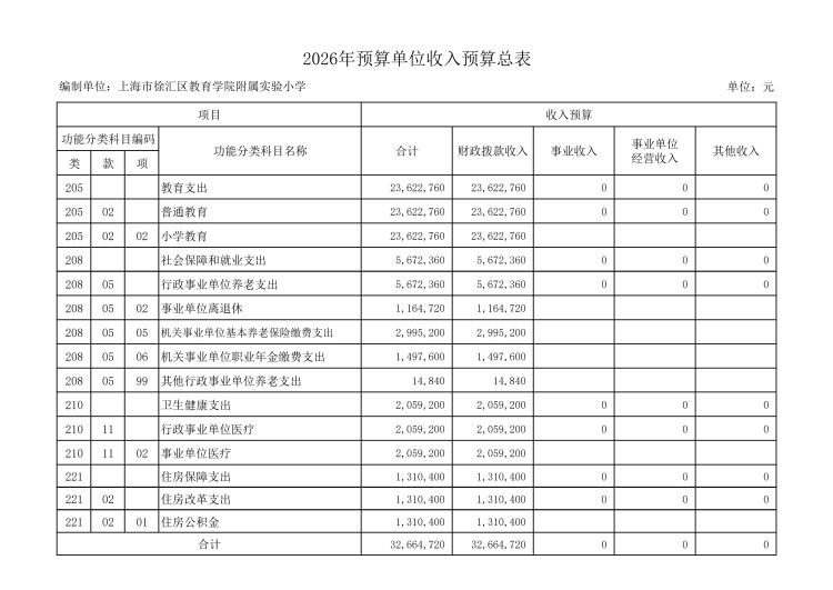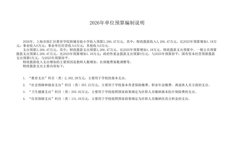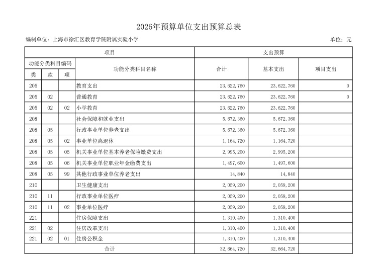 上海市徐汇区教育学院附属实验小学2026年度单位预算