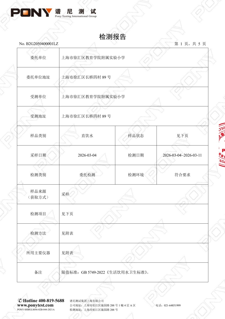 直饮水检测报告